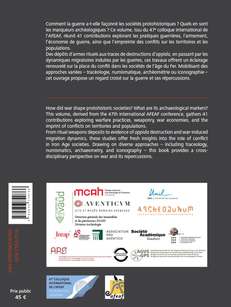 How did war shape protohistoric societies? What are its archaeological markers? This volume, derived from the 47th international AFEAF conference, gathers 41 contributions exploring warfare practices, weaponry, war economies, and the imprint of conflicts on territories and populations.